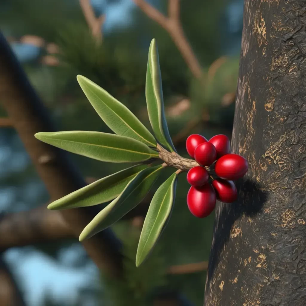 Mistletoe is a parasitic plant that attaches itself to the branches of trees and shrubs. It extracts water and nutrients from the host plant, often weakening it over time.